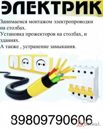 Занимаемся монтажом электропроводки на столбах. Установка прожекторов на столбах, и зданиях. А также , устранение замыкания.
