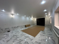 1 этаже у нас имеется спальня , большой зал ,гостиная, ванная и кухня зона. в доме сделан качественный современный ремонт по дизайну.