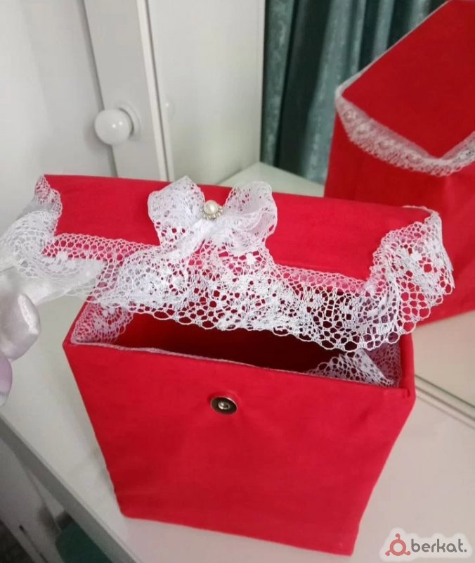 Предлагаю вашему вниманию стильный сундучок для хранения различных вещей на магнитной застежке, выполненный в ярком красном цвете и украшенный ажурным кружевом. Данный предмет интерьера станет не только функциональным решением для организации пространства, но и украсит дом. Удобный размер позволит разместить его, как на открытых полках,так и в шкафу, а аккуратный дизайн добавит элегантности любому интерьеру. Размер: 21*19*25 см (Д*Ш*В). Материалы: турецкий хлопок 100 %, картон, кружевная лента, магнитная застежка.