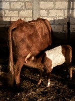 Продаю продаю корову с телёнком корова отделился месяц назад молоко даёт 14-15 л. Могу продать с телёнку и без телёнка цена 110000тис без телёнка 90 тис звоните на этот номер 89380070188