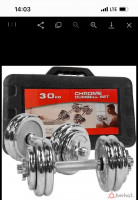 В наличии: набор гантелей 30кг в кейсе (хром) Идеальное качество ?? Набор состоящий из двух гантелей весом 15 кг каждая. Удобная разборная конструкция позволяет регулировать нагрузку в процессе занятий и собрать нужные гантели в зависимости от упражнения. В комплекте с гантелями идет компактный кейс, где можно хранить и перевозить гантели. Комплектация набора: Хромированный диск 2.5 кг 26 мм - 8 шт Хромированный диск 1.25 кг 26 мм - 4 шт Хромированный диск 0.5 кг 26 мм - 4 шт Хромированный гриф 36 см 2.5 кг - 2 шт Действует доставка по всей России?? Гарантируем самую низкую цену. Наш адрес: г.Назрань ул комунальная 13а Номер для связи: +7(928) 428-06-06