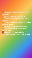 Продаю велосипеды на все возраста. У нас большой выбор.Самые лучшие цены и самое главное - лучшее обслуживание. номер +7(928)0954554 есть также wat’sapp на этот номер. Есть бесплатная доставка.