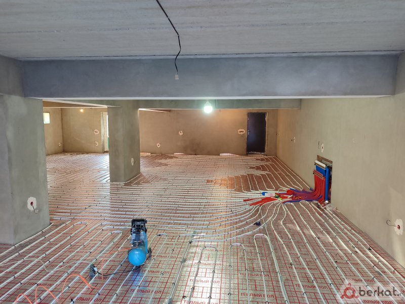 Укладка теплого пола, укладка утеплителя из пеноплекса, пленки без труб / с трубками, подключение контуров к коллектору, установка сборка коллектора