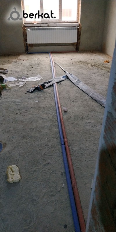 Стяжка дома, а так же Делаем отопление, прокладываем газ, установка радиаторов, счётчиков, котлов, и.т.д.