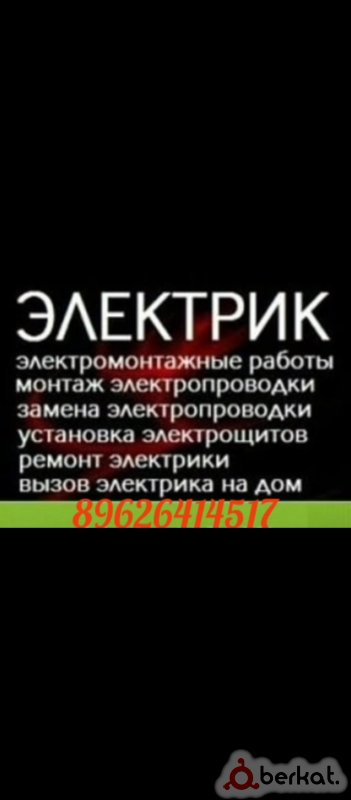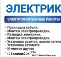 Ассаламу Алейкум Качественно выполняем все виды электрических работ устроняем замыкание прокладываем свет устанавливаем щитки, розетки, вещаем люстры меняем старую проводку и, тд