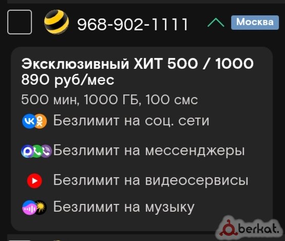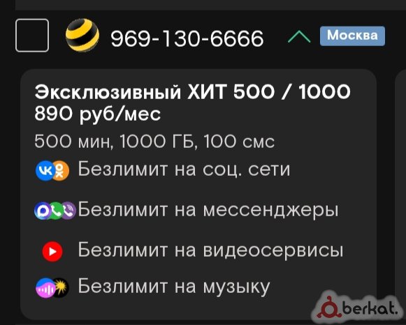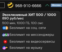 320 ₽/мес 2500 минут Безлимитный интернет Обращаться/писать на номер 9656969966